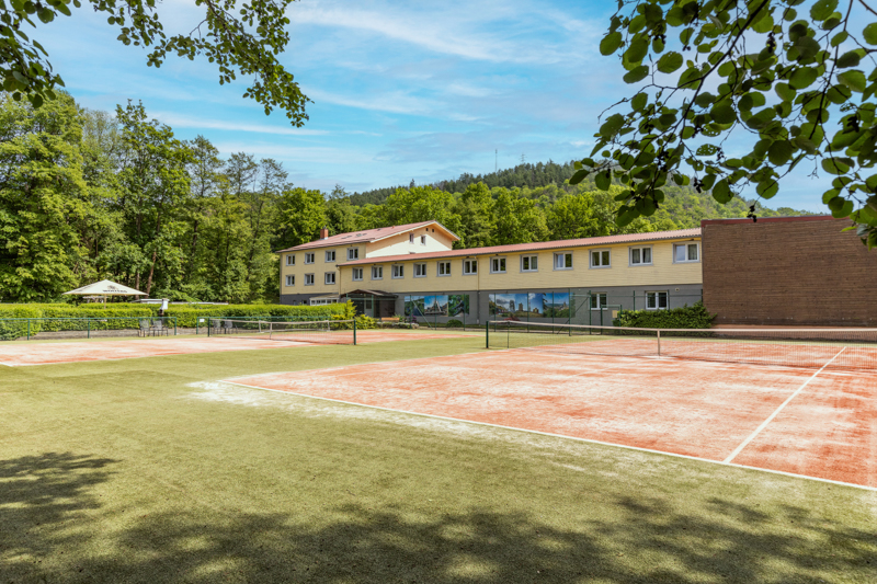 In unserer hauseigenen Tennishalle können Sie 3 Plätze mit Teppichboden bespielen. Gäste, die länger als 2 Nächte bei uns im Hotel verweilen, dürfen unsere Plätze 1 Stunde kostenfrei nutzen. Die dafür erforderliche Ausrüstung sowie die nötigen profillosen Tennisschuhe stellen wir Ihnen gern zur Verfügung.
